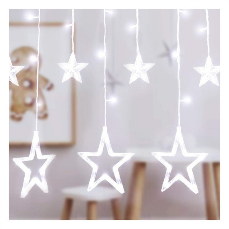Creează o atmosferă de poveste cu Instalația de Crăciun cu 12 Stele luminoase, alb rece, ideală pentru decorarea ferestrelor, pereților, teraselor sau vitrinelor. Luminile LED puternice, în nuanță alb rece, oferă un efect elegant și rafinat, perfect pentru serile de iarnă și sărbători.