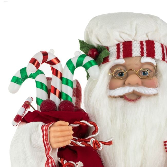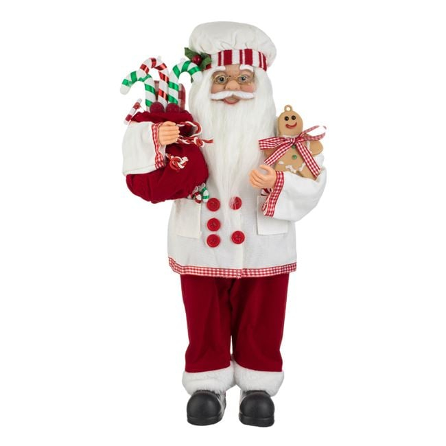 Adaugă farmec, culoare și un strop de magie dulce în decorul sărbătorilor cu această Figurină Decorativă Moș Crăciun Cofetar, cu înălțimea de 45 cm. Realizată cu mare atenție la detalii, figurina îl prezintă pe Moș Crăciun în rolul de cofetar, cu accesorii tematice inspirate din lumea prăjiturilor și a deserturilor de Crăciun.