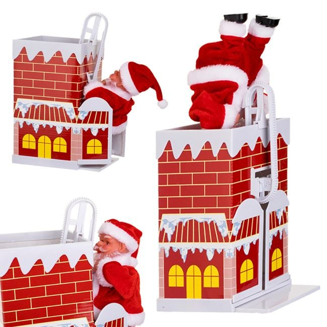 🎄 Jucărie interactivă de Crăciun – Moșul se mișcă pe horn, imitând urcarea și coborârea prin coș.