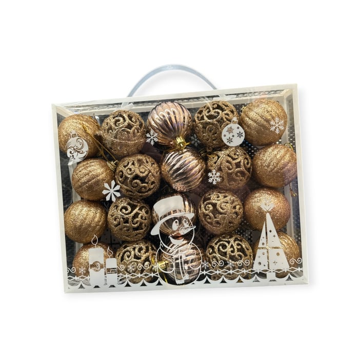 Adaugă un plus de rafinament decorului de sărbători cu Globulețele 20 buc/set Gentiță Auriu. Acest set premium conține 20 de globuri în nuanțe calde de auriu, ideale pentru a crea un brad spectaculos, luminos și sofisticat. Gentița în care sunt ambalate asigură transport și depozitare ușoară, păstrând globurile în siguranță pentru anii următori.
