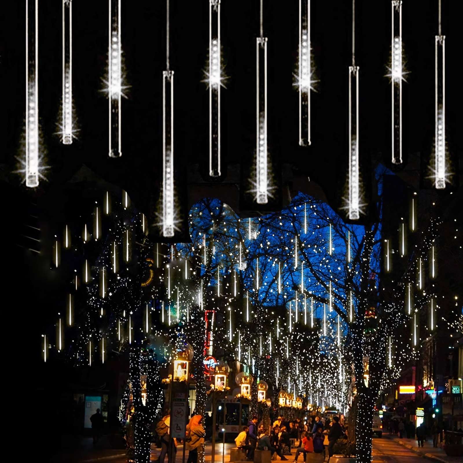 Creează o atmosferă de iarnă magică cu Instalația de Crăciun 3m cu 8 Tuburi LED de 50cm – Multicolor, ideală pentru decorarea bradului, ferestrelor, teraselor sau grădinii. Efectul spectaculos de ploaie de stele căzătoare oferă un joc de lumini elegant și modern, perfect pentru sărbători.