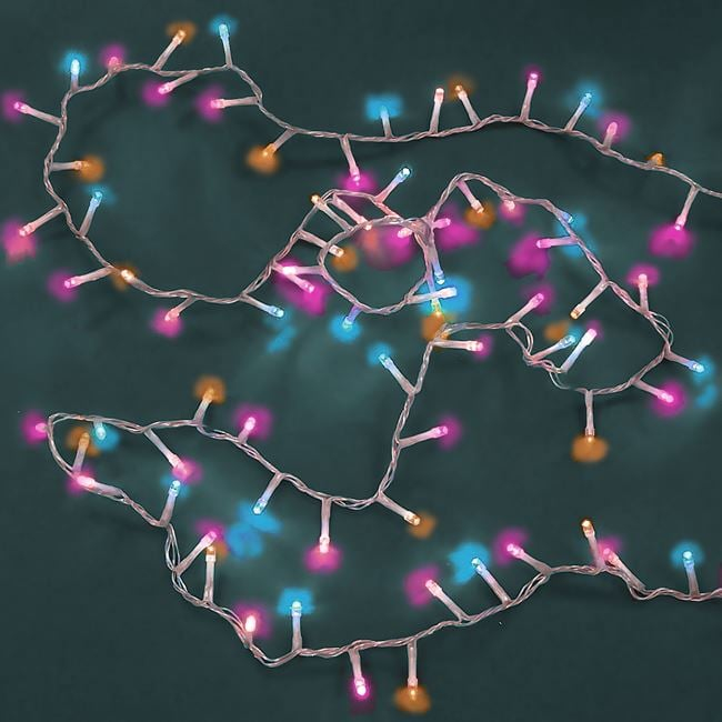 Creează un decor de poveste cu Instalația de Lumini Multicolor Pastel, perfectă pentru brad, ferestre, polițe sau aranjamente festive. LED-urile în nuanțe pastelate (roz, galben, mov, turcoaz) oferă o lumină delicată și elegantă, ideală pentru un Crăciun modern și vesel.