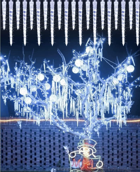 Iluminează spectaculos orice spațiu cu Instalația Luminoasă Alb Rece, formată din 8 tuburi LED de 80 cm, cu efect „ploaie de stele” sau meteorit. Este alegerea perfectă pentru grădini, balcoane, terase, pomi, acoperișuri, vitrine comerciale și decoruri de sărbători.