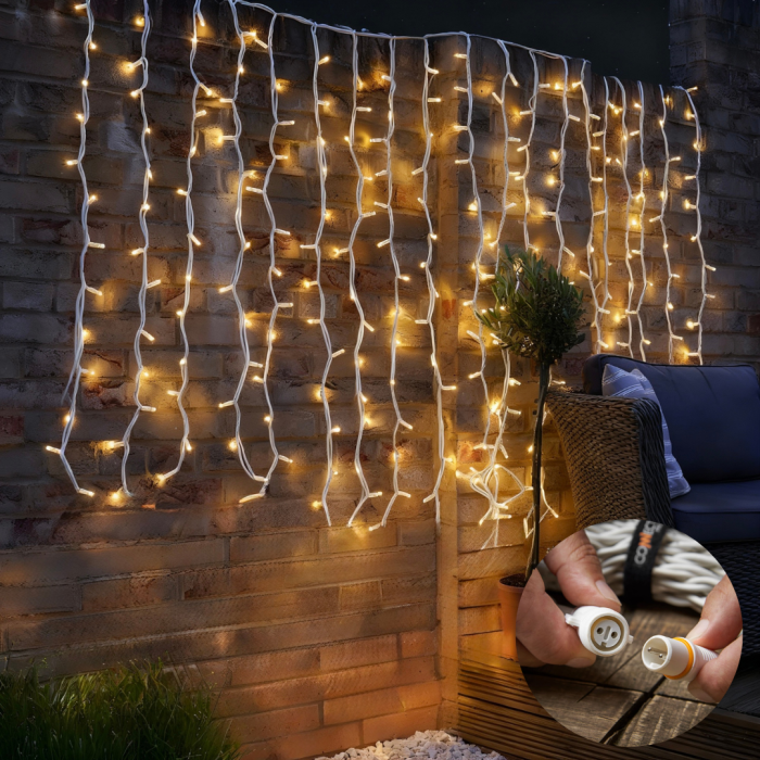 Această instalație luminoasă este ideală pentru decorarea pereților, gardurilor, ferestrelor sau a teraselor, oferind un efect spectaculos datorită luminii albe și distribuției uniforme a LED-urilor.