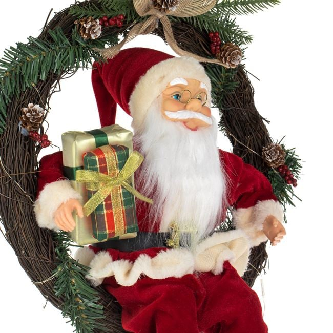 Creează un decor cald și autentic cu această coroană decorativă din lemn cu Moș Crăciun și lumină LED, având un diametru de 45 cm, ideală pentru ușă, perete sau șemineu. Realizată din lemn de calitate și elemente festive atent lucrate, coroana îl prezintă pe Moș Crăciun într-un design rustic, completat de iluminare LED care adaugă un efect magic și primitor.
