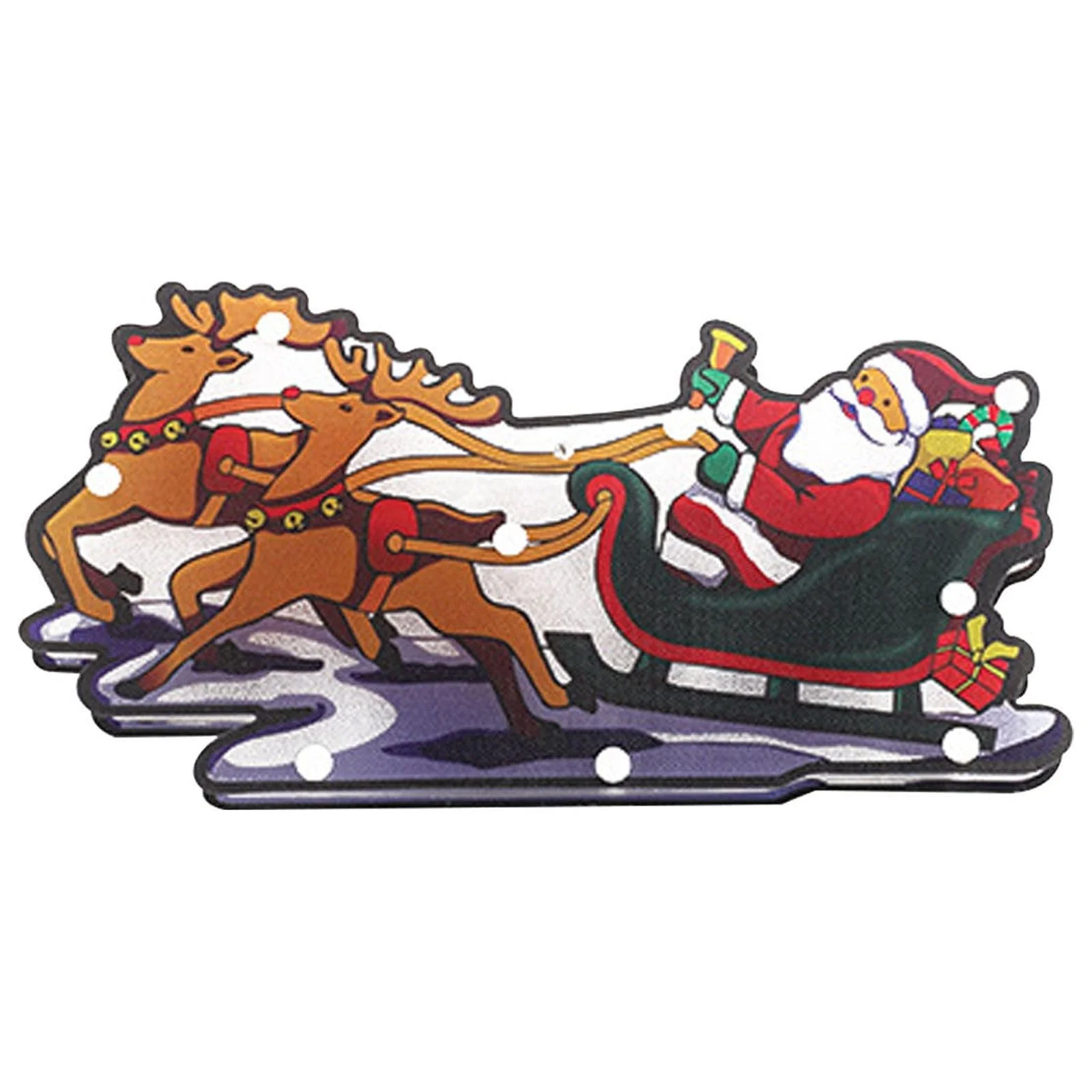Adaugă un strop de magie sărbătorilor cu Decorațiunea de Crăciun pentru geam – Moș Crăciun cu sanie LED, 46x25cm.