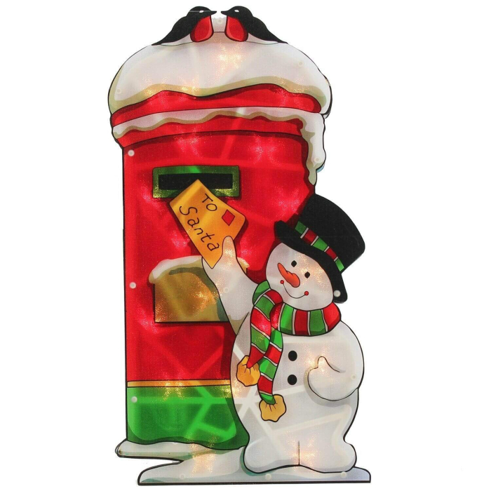Această decorațiune adorabilă îl prezintă pe un om de zăpadă simpatic, trimițând scrisoarea către Moș Crăciun, iluminat de beculețe LED care aduc o atmosferă caldă și festivă în casa ta.
