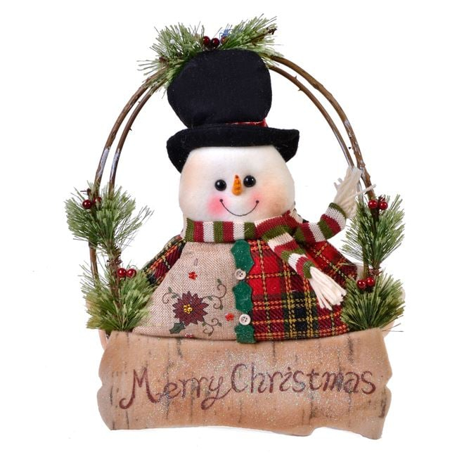 Completează decorul de iarnă cu această decorațiune suspendabilă de Crăciun din lemn, sub forma unei coronițe fermecătoare cu om de zăpadă. Cu o dimensiune de 37 cm și un design lucrat atent, această piesă aduce un plus de căldură, culoare și veselie oricărui spațiu festiv.