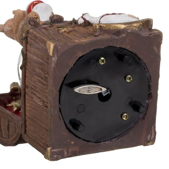 Transformă casa într-un colț de basm cu acest Glob de Zăpadă Decorativ Muzical în formă de Cufăr, cu Moș Crăciun și Jucării, având o înălțime de 13.5 cm. Modelul are un aspect vintage, cu detalii sculptate atent și o scenă adorabilă cu Moș Crăciun lângă brad, jucării pentru copii, ursuleț și cal-balansoar.