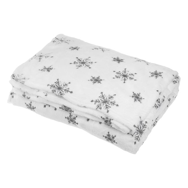 Adaugă un plus de eleganță și atmosferă festivă casei tale cu această pătură catifelată de Crăciun, în nuanță albă, decorată cu fulgi gri și accente glitter care oferă un efect discret și rafinat. Este perfectă pentru sezonul rece, fiind moale, călduroasă și foarte plăcută la atingere.
