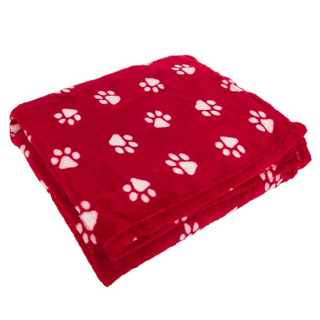 Oferă animalului tău de companie confortul pe care îl merită cu această pătură roșie pentru câini, decorată cu lăbuțe albe. Fabricată din material moale și călduros, pătura este perfectă pentru cușcă, canapea, pat sau pentru a proteja mobila de păr și murdărie.