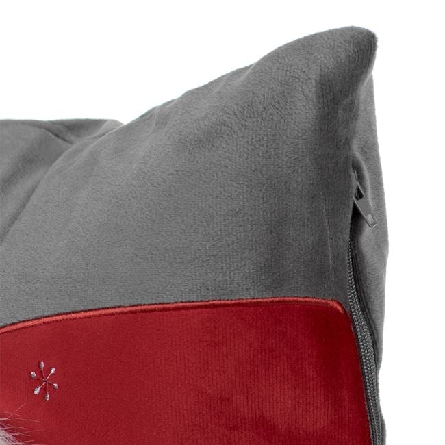 Adaugă un strop de magie în decorul de sărbători cu această Față de Pernă Decorativă de Crăciun Gnome, catifelată, în nuanțe gri și roșu ❤️🤍. Modelul prezintă un gnome adorabil, cu: